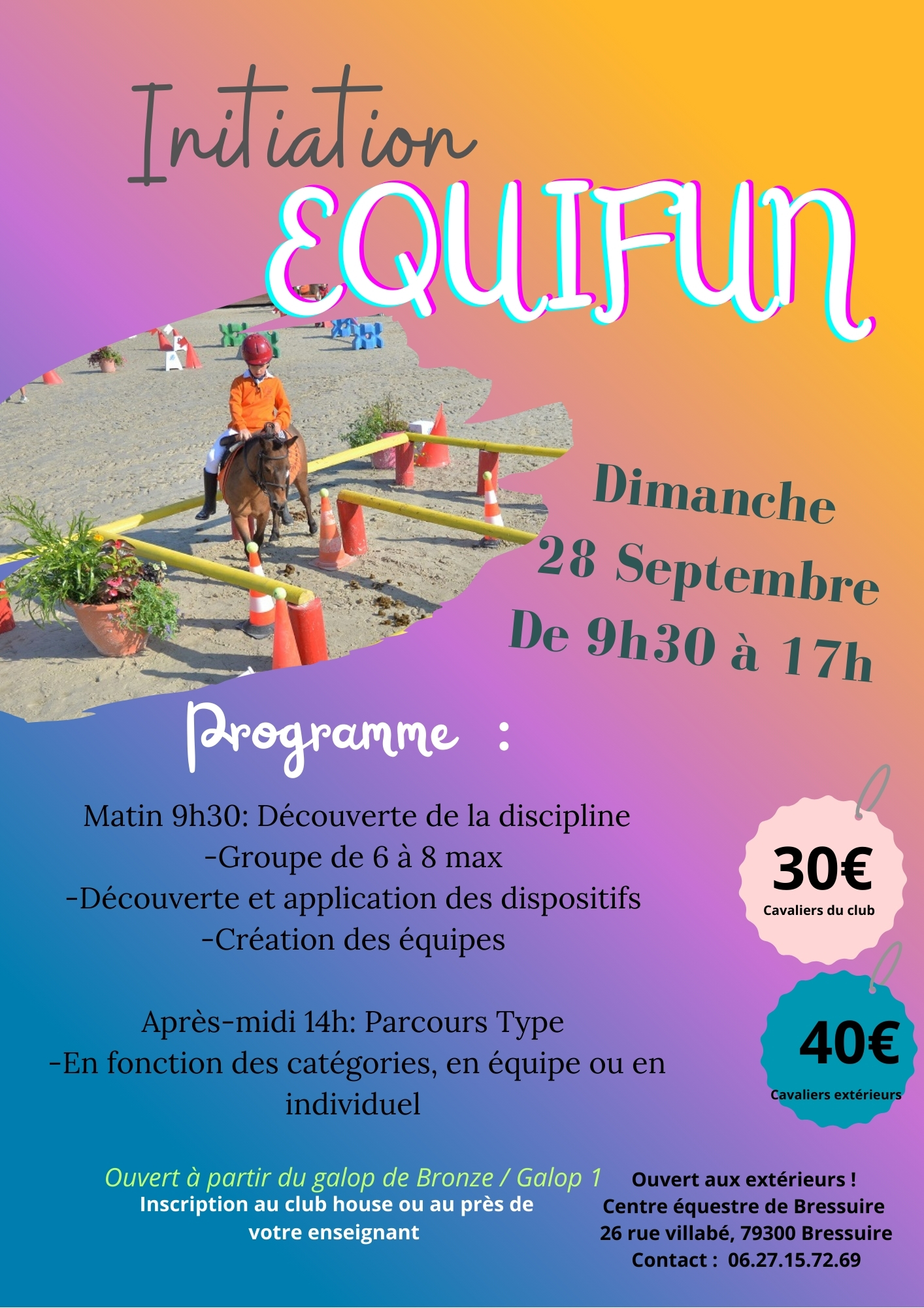 Journée Equifun le dimanche 28 septembre de 9h30 à 17h au centre équestre.